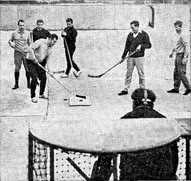 Aber die Zeit bis zum „Wiedersehen mit Väterchen Frost" verstreicht bei ihnen nicht ungenutzt. Konditionstraining wird großgeschrieben, und im (trockenen) Wasserreservebecken der Goetheanlage übt man auf einer Holzunterlage die Schüsse mit der Hartgummischeibe, dem kleinen Puck. Trainingsabende sind in Hannover und Bad Nauheim vorgesehen. Neben diesen beiden Städten sollen auch Frankfurt, Braunlage und Bremen in das Freundschaftsspielprogramm einbezogen werden. Nächstes Ziel: die Aufstellung einer Nachwuchsmannschaft. Für heute, 15 Uhr, ist im KSV-Klubhaus eine Zusammenkunft interessierter Jugendlicher (ab 15 Jahre) vorgesehen. Der große Wunsch aber bleibt das Eisstadion, das es ermöglichen würde", unabhängig vom Frost dem schönen Eislauf nachzugehen.