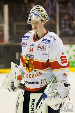 '''Dustin Strahlmeier''' wurde am 17.05.1992 in Gelsenkirchen, Deutschland geboren und hütete gegen die Kassel Huskies das Tor für den ESV Kaufbeuren und die Grizzlys Wolfsburg. | '''Dustin Strahlmeier''' wurde am 17.05.1992 in Gelsenkirchen, Deutschland geboren und hütete gegen die Kassel Huskies das Tor für den ESV Kaufbeuren und die Grizzlys Wolfsburg. | ||