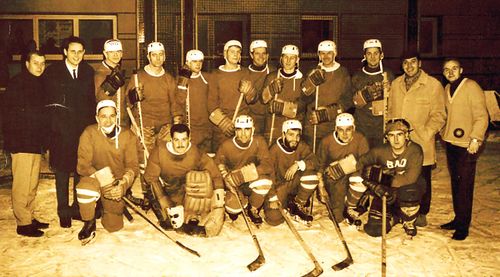Die Mannschaft der ESG vor ihrem Umzug vom Aschrottpark in die neu errichtete Eissporthalle an der Aue. Quelle: HNA